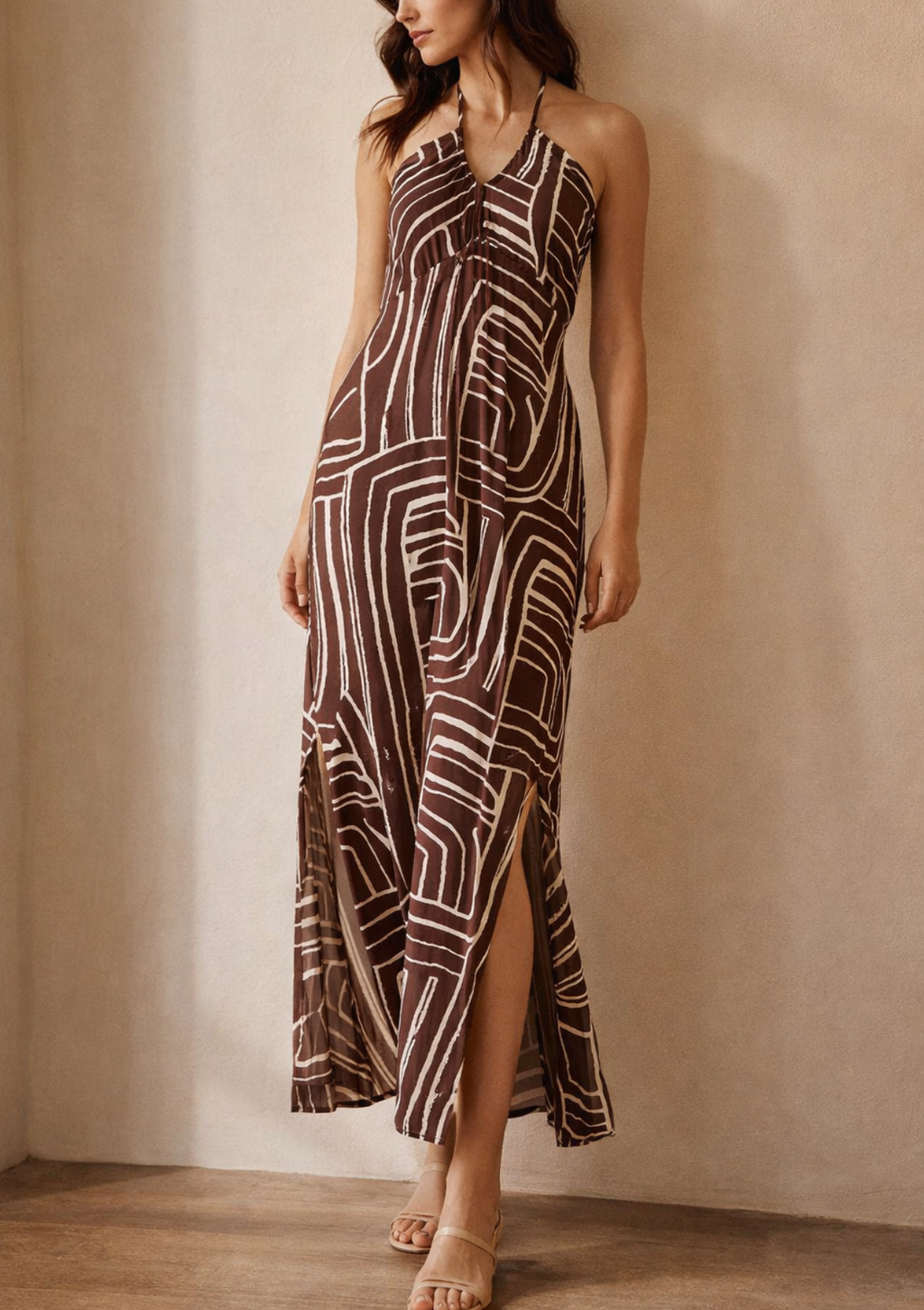 Deslumbra con nuestro vestido maxi de estampado, una prenda diseñada para destacar con frescura y sofisticación. Su silueta fluida lo convierte en el aliado perfecto para eventos de verano o días de sol.