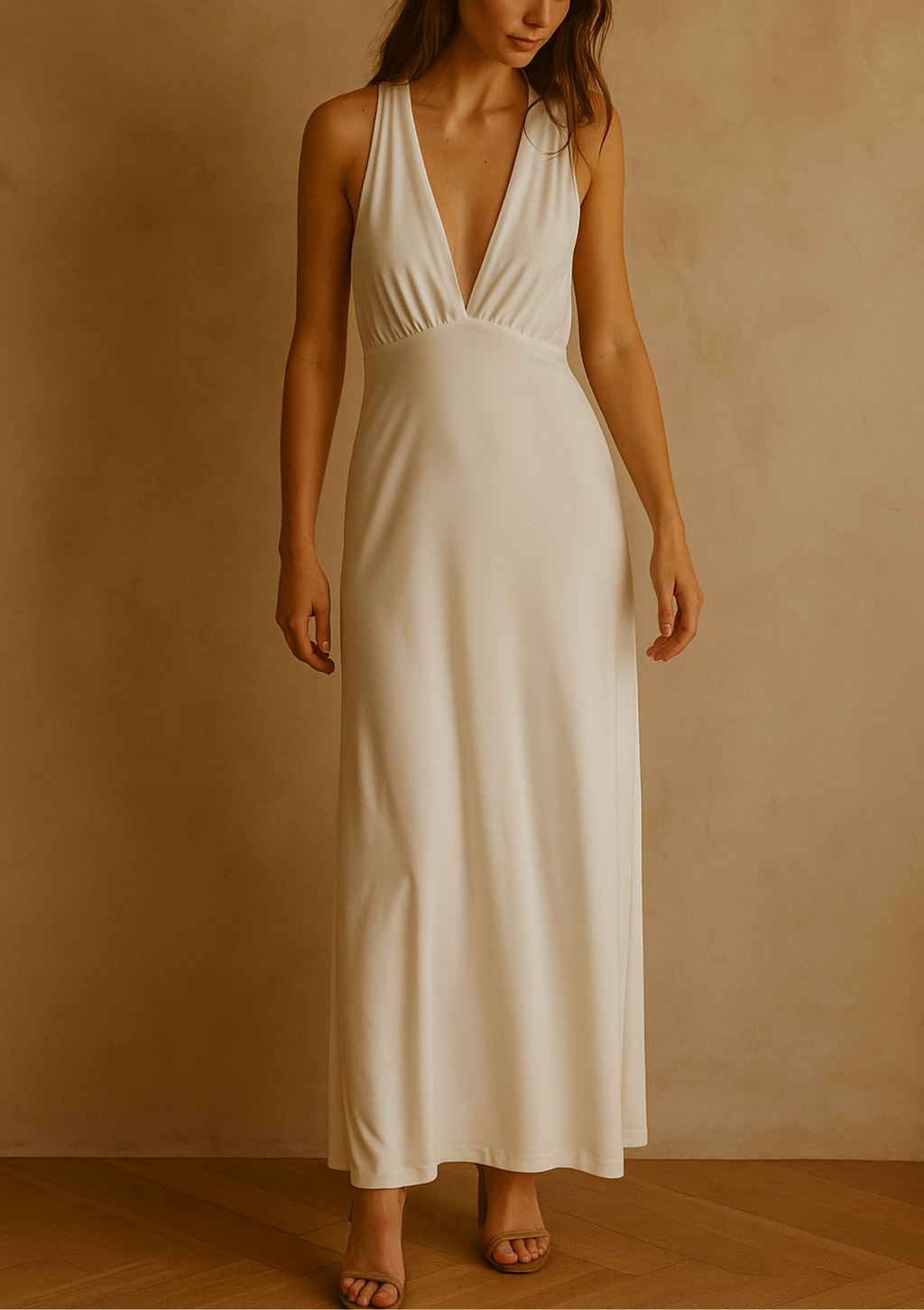 Elegancia minimalista y sofisticación en una sola prenda. Este vestido de lycra de corte midi resalta la silueta con un favorecedor escote halter de cuello largo y caída fluida. Su diseño moderno y versátil lo convierte en una opción perfecta para eventos de noche, cenas elegantes o celebraciones especiales donde quieras destacar con un look chic y refinado.